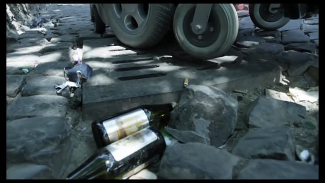 Il festival di Venezia ha chiesto a diversi registi un corto di un minuto e mezzo, da mostrare insieme. Non sapevo se volevo farlo o meno. Ma andandomene in giro sulla mia sedia a rotelle, chiamiamola la mia sedia elettrica, qui nei dintorni, ci sono tutti questi sampietrini, e la strada è piena di buche. Andare in giro è complicatissimo. Così ho fatto un film politico – un appello al sindaco di Roma affinché si occupasse delle condizioni delle strade. [Ride] Non ha proprio funzionato. L’altro giorno siamo usciti e tutto era lo stesso, se non peggio.